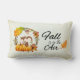 Typografie die zegt dat Herfst in de lucht is. Illustratief met een schattige eekhoorn die achter een oranje waterverf pompoenen staat. Een versierd blad dat hen omringt met een eikenblad, een eikel, herfst oranje bloemen en andere kruiden en bladeren. Achtergrond is een faux perkamentachtig afbeelding in een crèmekleur, met een ruw gerijpt uiterlijk rond de randen.