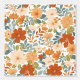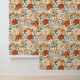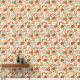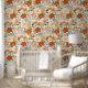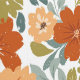 Bloempatroon met warme herfsttinten van verbrand sinaasappel, zacht beige en gedempte greens. Gestileerde bloemen en delicate bladeren zijn verspreid over.