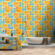 Dit kunstwerk heeft een levendig en dynamisch patroon van herfstbladeren, weergegeven in een rasterachtige opstelling van kleurrijke blokken. De bladeren zijn weergegeven in tinten van sinaasappel, geel en rood, met ingewikkelde aderdetails die textuur en diepte toevoegen. De achtergrondblokken wisselen tussen vet blauw en warm sinaasappel, waardoor een opvallend contrast ontstaat dat het seizoensgebonden thema versterkt. Het ontwerp combineert een eigentijdse, grafische esthetiek met het natuurschoon van het gebladerte van de herfst, wat resulteert in een levendige en opvallende compositie.