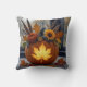 Een prachtig gesneden pompoen toont een gloeiend esdoornblad, omringd door bloemen, fazantenveren en herfstbladeren, terwijl de bladeren op de achtergrond zachtjes van de herfst afdruipen