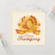 Vier de sfeer van Thanksgiving met dit charmante wenskaart met een vriendelijke kalkoen omringd door feestelijke pompoenen en herfstbladeren. De voorkant van de kaart wenst een warme 'Happy Thanksgiving' met een heerlijk ontwerp dat de vreugde en overvloed van het seizoen vangt. De binnenkant bevat een oprechte boodschap, perfect om je dankbaarheid en welwillendheid te uiten, maar het kan gemakkelijk worden gepersonaliseerd om aan je gevoelens te voldoen. Aan de achterkant is er voldoende ruimte om je eigen bericht te schrijven, zodat je een persoonlijk tintje kunt toevoegen aan je Thanksgiving-groeten. Deel je bedankt en maak iemands dag speciaal met deze prachtige kaart!