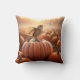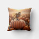 Herfstvogel zingt op een pompoen kussen