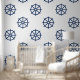 Vergroot uw ruimte met onze geometrische vorm Nautical Coastal Navy Blue Ship Wheel wallpaper. Met een stijlvol patroon van ankers en geometrische vormen in een verfijnd marineblauw palet, brengt dit behang een moderne kustvibe naar elke kamer. Perfect voor het toevoegen van een vleugje nautische charme aan uw woonkamer, slaapkamer, kantoor of kinderkamer, het combineert eigentijds design met tijdloze maritieme elementen.