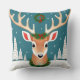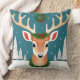 Gedetailleerde illustratie van een hert met geweien in een sereen, besneeuwd landschap met groen en paddenstoelen.