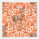 Handgetekende herten op damast patroon met eiken takken en bladeren
