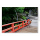 Herten oversteken van een rode Japanse brug