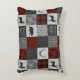 Patchwork-ontwerp vol met roestrijke boslandelementen in rood, grijs en zwart. Deer, beer, pijlen en bomen! Adelavontuur wacht!