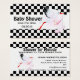 Baby shower Sparen de Datum - Zwart en wit dambord en schattig stork die een roze verpakte baby girl bij dragen - Kute baby shower sparen het visitekaartje van de Datum voor uitlevering op het werk of speelplaats... waar ooit - gemakkelijker dan het verzenden nodigt voor ontvangers dicht bij huis uit
