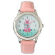 Een horloge met een griezelig waterverf beer. Gedrooid met schattige kleine harten over zijn borst en geschilderd in roze en groen. Reeks op een aqua groene ambre achtergrond.