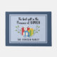 Ring in het vakantieseizoen met deze aanpasbare deurmat met een eenvoudige illustratie van feestelijk verpakte kerstcadeaus versierd met kleurrijke bogen en geaccentueerd met zachtjes vallende sneeuw en groen. Elegante scripttypografie biedt een oprechte vakantieboodschap met de tekst: "Het beste geschenk is de aanwezigheid van familie." Personaliseer dit ontwerp door uw familienaam toe te voegen aan creëer een hartelijke groet voor familie en gasten. Het is ook een leuk cadeau voor nieuwe huiseigenaren.