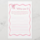 Voeg een speelse touch toe aan uw vrijgezellenfeest games met onze gepersonaliseerde Tying the Knot Pink Bow Vrijgezellenfeest Game! Perfect voor een koppelverkoop van de knoop vrijgezellenfeest thema, dit charmante spel omarmt boog-thema vrijgezellenfeest ideeën en past naadloos bij elk coquette vrijgezellenfeest thema. Ideaal voor een boog feest, het brengt stropdas de knoop vrijgezellenfeest ideeën tot leven, waardoor het een heerlijke aanvulling op uw boog vrijgezellenfeest thema!