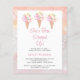 Deze budget bruidsdoucheuitnodiging met een ijsthema is versierd met drie waterverf ijskegels, bloemetjes en een pastelachtergrond. De tekst zegt: "Ze is opgepakt!" in stijlvolle roze typografie. Pas deze kaart aan door uw douchegegevens toe te voegen. Originele Waterverf © Michele Davies.