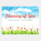 Moedig iemand aan die herstelt van een operatie met dit unieke typografische ontwerp, met de boodschap: "Denk aan je als je herstelt van een operatie." Het ontwerp omvat de waterverf van de florale grens en de blauwe achtergrond van de hemel. Binnen heeft dit bericht maar kan met uw eigen bericht worden aangepast.