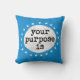 Vetgedrukte tekst met de tekst "uw doel is" is gecentreerd tegen een blauwe achtergrond. De zwarte tekst zit op een witte cirkel met witte sterren eromheen, wat een speels contrast biedt tegen de kleurrijke achtergrond.