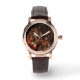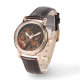 Het geluid van de Abstracte muziekkunst is perfect vierkant, bruin lederen horloge