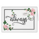 voor haar met deze elegante kalligrafie-typografie. Voorzijde van kaart is voorzien van het woord "altijd" in zwarte kalligrafie met elegante glyphs en cadeau label met string die woorden bevat, "voor mijn dochter" met hartaccenten. Het ontwerp wordt geaccentueerd door bleke roze rozen en groene bladen met een zwarte rand.
