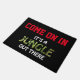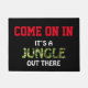 KOM OP IN HET IS EEN OERWOUD HIER. Het woord OERWOUD gevuld met groen oerwoud motief.