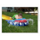 Goed voor verjaardagen en speciale gelegenheden, of voor het vieren van het leven. Een jongen op een waterslide,