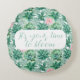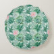 Bloemen rond kussen met een prachtig botanisch patroon en "Het is uw tijd om bloeiende print. Esthetische mix van groene vetplanten en roze lelies brengt een kalmerende ontspannende touch aan elke kamer. Perfect cadeau voor iedereen die van vetplanten houdt of fan is van de roze lelie. voor jou om je eigen touch toe te voegen aan dit mooie ronde kussen.