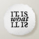 "Het is wat het is" Zwart-wit typografie Rond Kussen