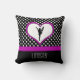Gepersonaliseerde Cheerleading werpt hoofdkussen -- zwart-witte polkadots, met een hart en een cheerleader in het centrum. Voeg jouw naam toe!