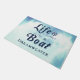 Welkom bemanningsleden, familie en vrienden bij je boot. De moderne typografische boot citeert "Het leven is beter aan boord" met je bootnaam of familienaam. Omvat een kompas en bootwiel in het ontwerp. Geweldig voor bootdokken en bootgverschuivingen.