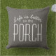 Het leven is beter op het Porch Quote dat wordt toegevoegd aan urbane bruin bruin met een witte schaduwdoopvont. De kleur van achtergrond en doopvonten worden gemakkelijk veranderd in de sectie van het het ontwerphulpmiddel van Zazzle. Bekijk onze andere kussens voor prijsopgave! Pas een reeks van uw aan!