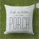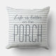 Het leven is beter op de veranda | Blauw grijs gestreept buitenkussen; Voeg charme toe aan uw veranda met dit stijlvolle buitenkussen met het citaat "Het leven is beter op de veranda" in donkerblauwe typografie. Ontworpen met zachte grijze blauwe strepen en witte accenten, combineert dit decoratieve kussen moderne elegantie met een gezellig buitenleven. Verkrijgbaar in vierkante maten, perfect voor patio's, dekken en zitplaatsen in de tuin. Pas kleuren eenvoudig aan met de ontwerptool van Zazzle om aan te sluiten bij uw interieur. Een doordacht cadeau voor housewarmings, jubilea of zomerveranda styling. Andere kleuropties beschikbaar.