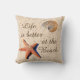 Zand en zeeschelpen Het leven is zoveel beter bij het strand katoenen kussen.
