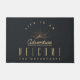 Een gepersonaliseerde deurmat die Welkom met jouw naam zegt. Ontworpen met een goudkleurige illustratie op een zwart-grijze achtergrond. Ontworpen met een illustratie van een berg met de zonnestralen die van achteren naar buiten schijnen. Typografie zegt: Het leven is een avontuur verkennen droom ontdekken.