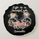 Een mooie en elegante schattige kleurrijke waterverf roze perzik bloemenfiets met motivatie quotes meisjesnaam op zwart rond kussen. Het is een mooi, elk af en toe uniek cadeau voor haar die houdt van bloemenfiets met quotes. Perfect voor verjaardag, moeder of jubileumcadeau. U kunt de naam eenvoudig wijzigen door op de optie personaliseren te klikken.