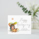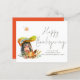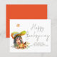 Budget Cute Hedégel Handwriting Script Happy Thanksgiving. EEN BEGROTINGSPrijs KLEINE 4,5 x 5,6-inch flat-card voor uw Thanksgiving op een glanzend SEMI GLOSS 110 lb kaartvoorraad (vergelijkbaar met de dikte van een briefkaart). Een schattige egel- en herfstbladparaplu met trendy set typografie voor Happy Thanksgiving. Pas je namen aan de onderkant eenvoudig aan. Een coördinerend herfstrood staat op de achterkant.
