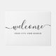 Doormat met het woord "Welkom" in een modern kalligrafiekscript en dat u zich kunt personaliseren met uw straatadres, allemaal tegen een bewerkbare achtergrondkleur (klik op aanpassen om te veranderen) die perfect is voor uw eigen huis of uw huuropbrengst, hotel, bed en ontbijt, enz. Pas het aan door de placeholder tekst te vervangen. Voor meer opties zoals het veranderen van de doopvont en het is grootte/kleur of het uit elkaar plaatsen tussen brieven klik de "aanpassen"knoop. *Gelieve te merken op dat het Zazzle Watermerk dat in de gezoemvoorproef verschijnt NIET op het definitieve gedrukte product zal verschijnen. © Rosewood en Citrus