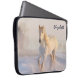 Een laptophoes met een foto van een prachtig wit paard. Het lopen door een sneeuwbedekt gebied. Majesteits en mooi.