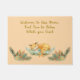 Doormat opnieuw omdoen met een slapende vos en bloemen op een gouden gele achtergrond. De woorden op de mat zijn permanent. Bedankt aan Hungryjpeg voor enkele elementen in het ontwerp.