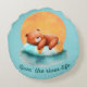 Schattige "Summer Vibes" ronde accentkussen beschikt over waterverf digitale kunst ontwerp van een schattig luie bruin beer zwevend langs de rivier met "Livin' the River Life" tekst
