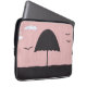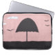 Deze computercover is ontworpen met een afbeelding van een gedempte paraplu tegen een roze zonnehemel.