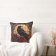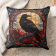Een griezelige, enge raaf, afgebeeld in gebrandschilderd glas, richt zijn blik op de toeschouwer.