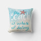 Het is duidelijk dat het strand mijn gelukkige plek is! Dit kussen is voorzien van een koraalzeester met een typografie die zegt: "Het strand is waar ik thuishoor" op een blauwe en roomachtergrond. De achterkant van de kussen is een zandige, beige kleur. Ideaal voor thuisgebruik, huishouden, cabine of voor een ander decor van elke dag! Ontwerp van Jenn's emporium.