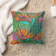 Liven omhoog uw ruimte met dit kleurrijke hoofdkussen van een gestileerde het schilderen collage van trillende tropische bloemen door Lisa Lorenz