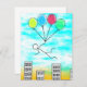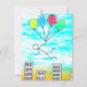 Een tekenfilm met ballonnen om over de stad te vliegen. Digitaal afbeelding.