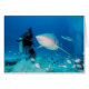 Bull shark feed dive at Playa Del Carmen. De feeders draag een koetskostuum voor bescherming.