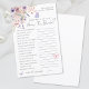 Een leven van vlinders Hoe goed ken je de bruid? Spel. Voeg een leuke en grillige activiteit toe aan je vrijgezellenfeest met dit betoverende vraagspel, ideaal voor een themafeest met het thema "A Lifetime of Butterflies". Gasten kunnen testen hoe goed ze de bruid kennen door een reeks leuke en persoonlijke vragen te beantwoorden, hun antwoorden op te schrijven in de voorziene ruimtes. Het ontwerp is voorzien van delicate waterverf wilde bloemen met roze en paarse vlinders fladderen sierlijk rond het spel. Het kleurenpalet bestaat uit zacht blozend roze, stoffig roos, lila, lavendel, violet en frisse greens voor een dromerige, romantische look. De speltekst wordt weergegeven in een mix van elegant handgeschreven script en schone seriële lettertypen, waardoor het zowel stijlvol als gemakkelijk te lezen is. Volledig aanpasbaar, u kunt de vragen, lettertypen en kleuren bewerken om perfect bij uw vrijgezellenfeest-thema te passen. Deze activiteit voegt een zoete en speelse touch toe aan het vieren van de aanstaande bruid.
