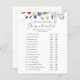 Vrijgezellenfeest spelkaart met een waterverf van wilde bloemen en groenery met een zoemende bij. Een leuke manier om met douchegasten te communiceren.