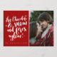 Stuur iemand de warmste seizoensgroeten met deze unieke kaart. Op de voorkant staat een klein seizoensgedicht: "Heet chocolade en sneeuw en brand aglow".... - Omdat er geen warmer gevoel is dan warme chocolade-infront van een hart te gooien terwijl het buiten sneeuwt. De rug is versierd met een mooi wintersweater Fair Isle patroon. Voeg je eigen favoriete familiefoto, jouw naam en het jaar toe.