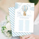 Verfijnd klassiek "Baby name race" spel ontworpen voor een baby boy douche, versierd met een charmante teddybeer vliegen met hete luchtballon en bericht 'Adventure waits'. Betrek uw gasten met dit prachtige spel, perfect voor het toevoegen van plezier en opwinding aan uw viering terwijl het creëren van gekoesterde herinneringen.