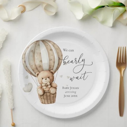 Versier je baby shower met deze schattige feestbenodigdheden met een waterverf teddybeer in een heteluchtballon. Aanpassen met jouw tekst. Bijpassende producten verkrijgbaar in de Adore Paper Co Zazzle shop.