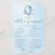 Dit is een Blue Hot Air Balloon Wat zit er in je tas Baby shower spel. *Wat zit er in je tas? - Gasten krijgen punten voor elk item dat ze in hun tas hebben. Wie de meeste punten krijgt, wint!