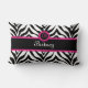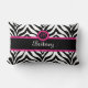 © Sociale Design. Voeg wat bruisende en chique ontwerpelementen toe aan uw woonkamer met dit zebrapatroon, hete roze kant, monogram en naam lumbaal kussen.