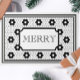 Deze stijlvolle zwart-wit faux tegel deurmat met een groen grijs randje is ideaal voor elk huis deze kerst. De strakke lijnen, eenvoudige kleuren en patronen zijn tijdloos en veelzijdig. Ontworpen op een mat op basis van rubber die duurzaam en gemakkelijk te reinigen is.